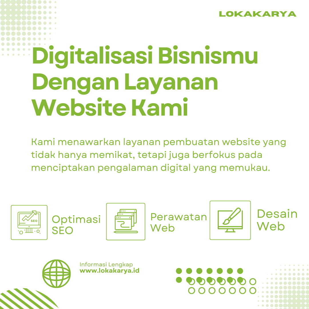 Di era digital, mencari informasi produk & jasa sudah biasa dilakukan melalui internet. Untuk meningkatkan visibilitas bisnis Anda, jasa pembuatan website menjadi solusi penting bagi bisnis.